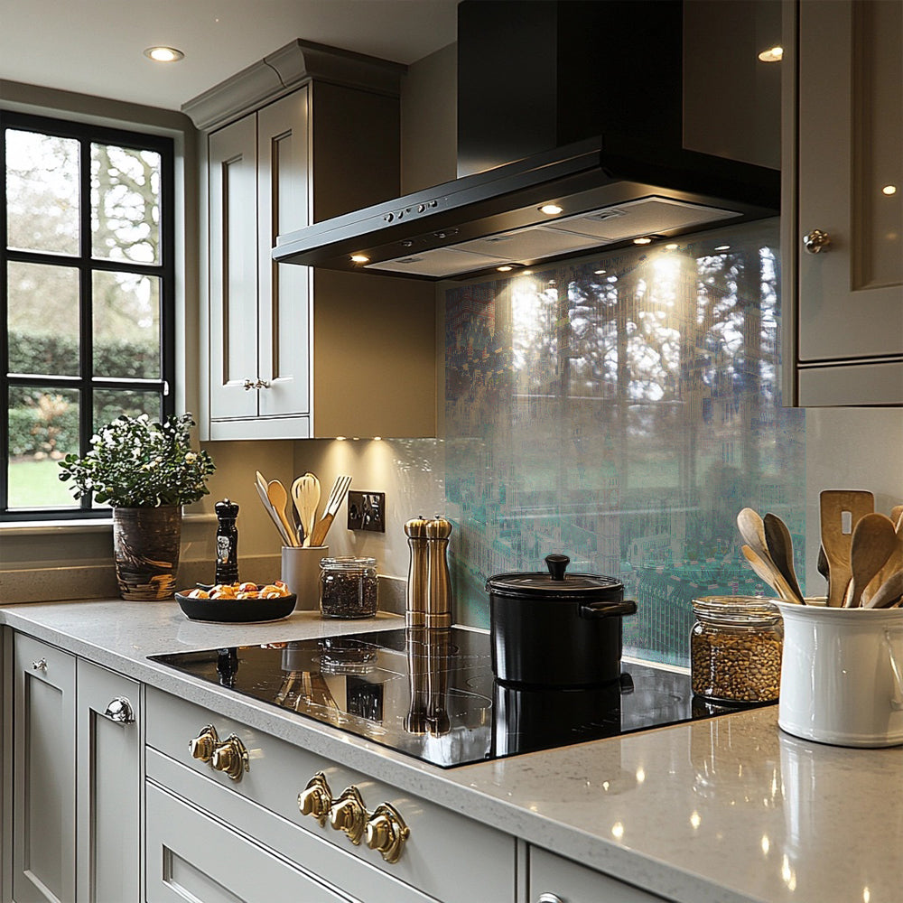 Bring bold artistry into your kitchen with a splashback that combines vibrant colors and sleek, toughened glass. The durable, heat-resistant material is built to last, while its smooth, glossy surface is easy to clean. Light-reflecting and eye-catching, this splashback adds a modern touch to any space. A perfect blend of style and functionality for today’s kitchens.