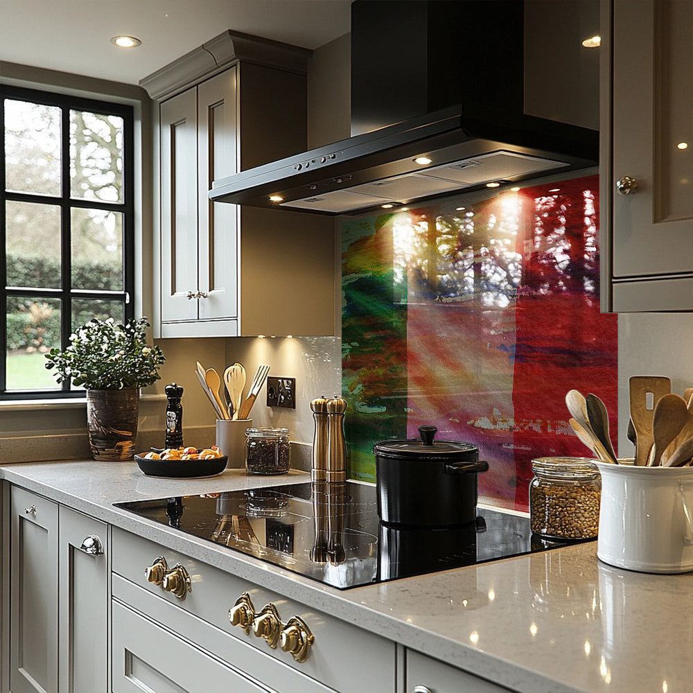 Bring bold artistry into your kitchen with a splashback that combines vibrant colors and sleek, toughened glass. The durable, heat-resistant material is built to last, while its smooth, glossy surface is easy to clean. Light-reflecting and eye-catching, this splashback adds a modern touch to any space. A perfect blend of style and functionality for today’s kitchens.