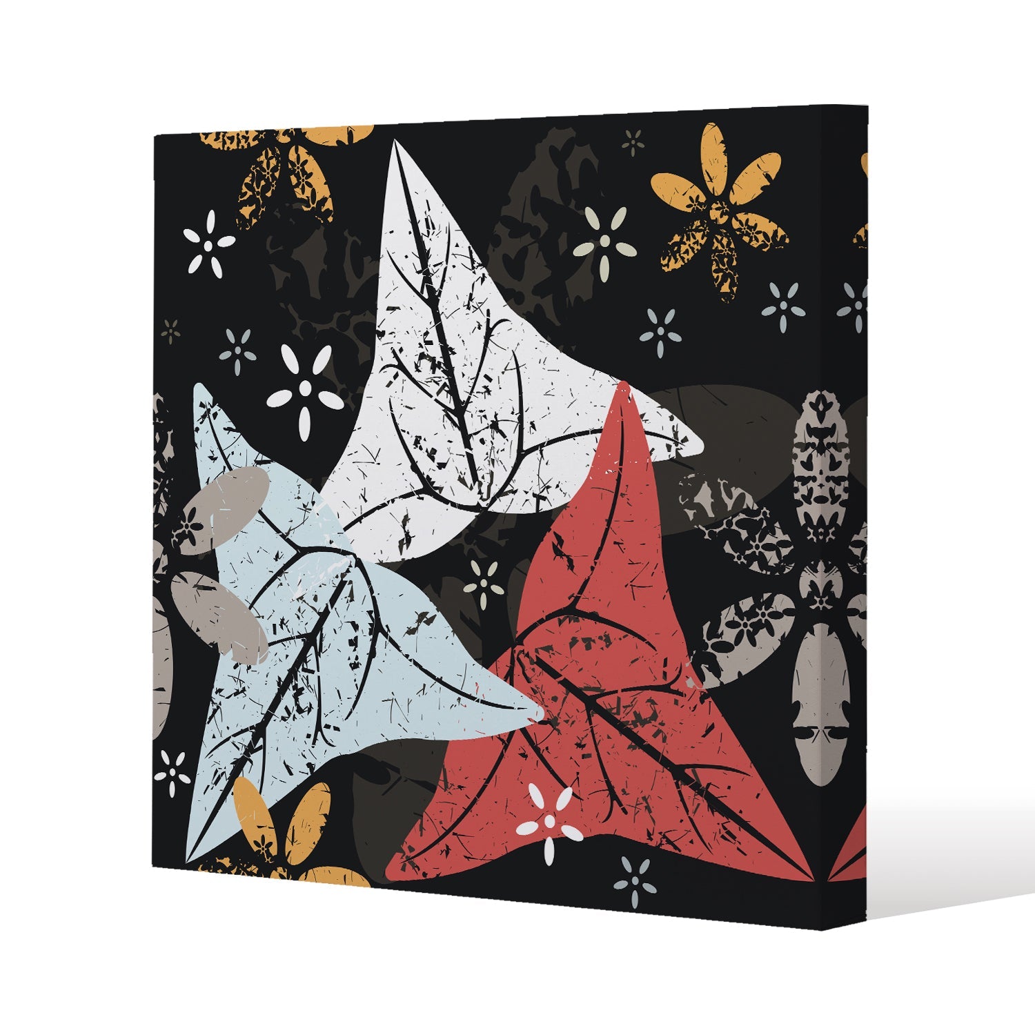 Leaves And Flowers. Autumn pattern Slim Style Canvas Print 75x75cm , 15mm Slim Real wood.