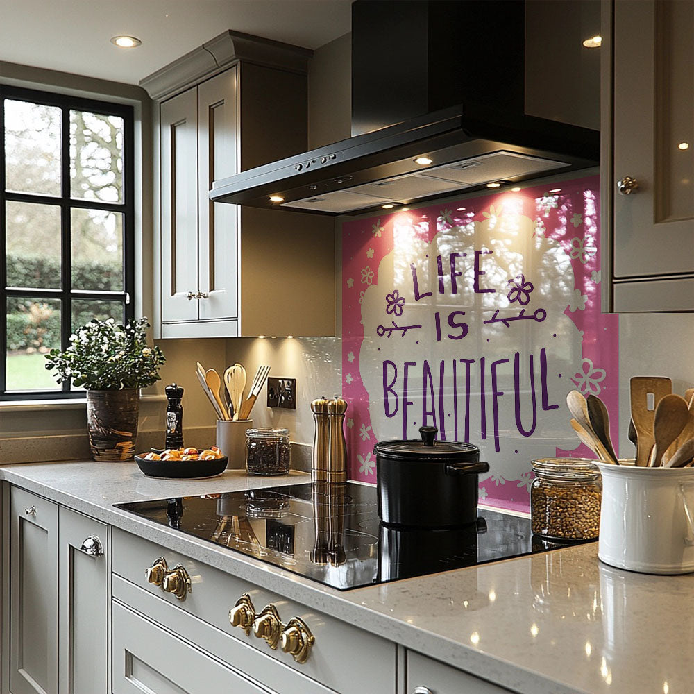 Bring bold artistry into your kitchen with a splashback that combines vibrant colors and sleek, toughened glass. The durable, heat-resistant material is built to last, while its smooth, glossy surface is easy to clean. Light-reflecting and eye-catching, this splashback adds a modern touch to any space. A perfect blend of style and functionality for today’s kitchens.