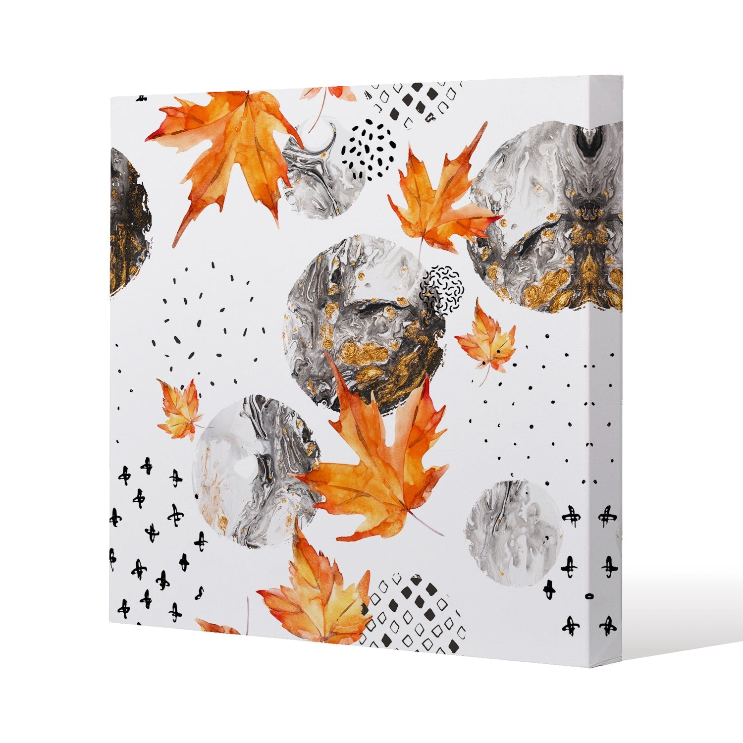 Maple Leaves & Marbled Circles Slim Style Canvas Print 60x60cm , 15mm Slim Real wood.