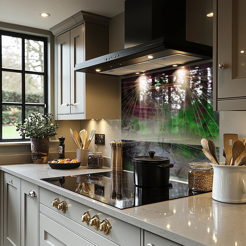 Bring bold artistry into your kitchen with a splashback that combines vibrant colors and sleek, toughened glass. The durable, heat-resistant material is built to last, while its smooth, glossy surface is easy to clean. Light-reflecting and eye-catching, this splashback adds a modern touch to any space. A perfect blend of style and functionality for today’s kitchens.