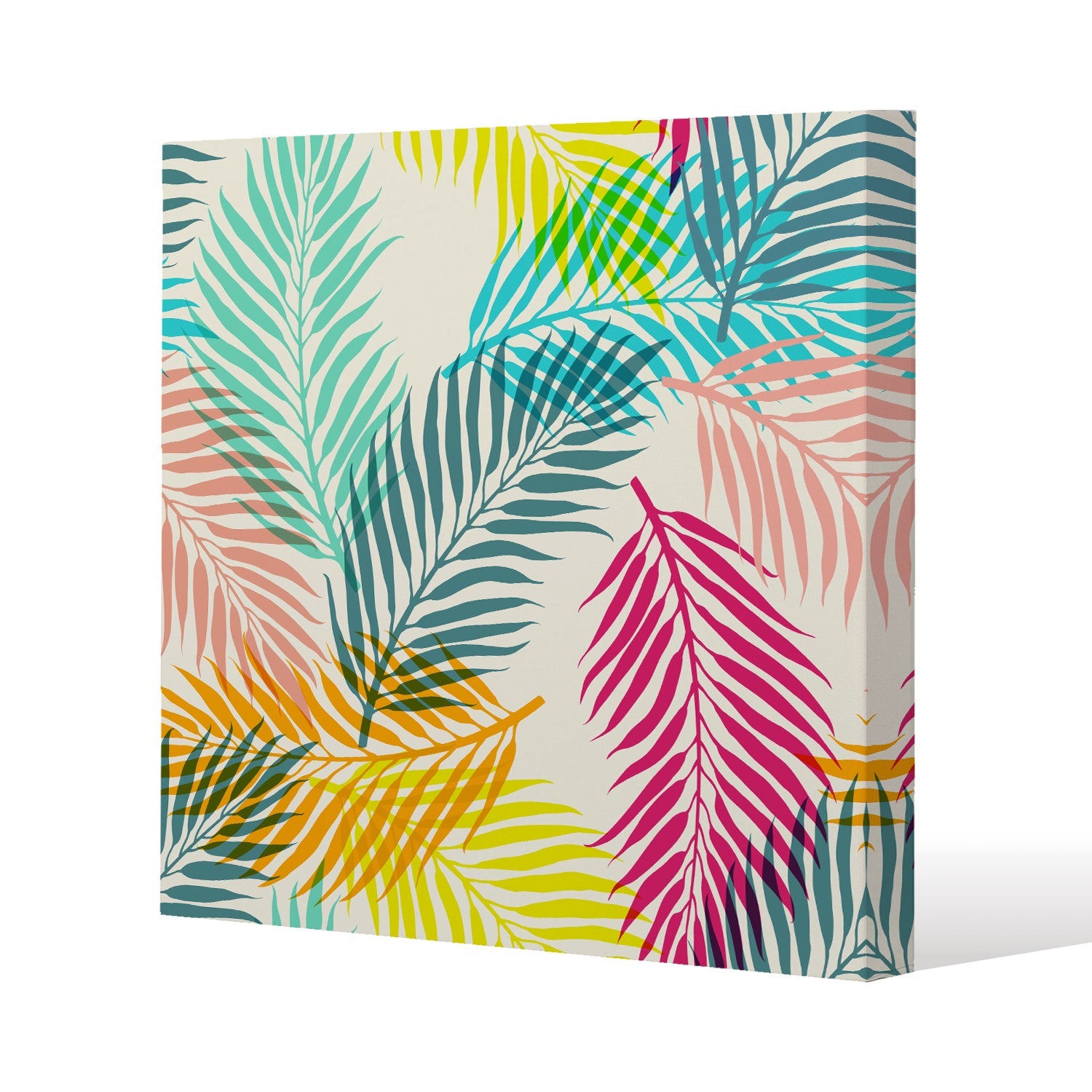 Multi Coloured Tropical Leaves Slim Style Canvas Print 90x90cm , 15mm Slim Real wood.
