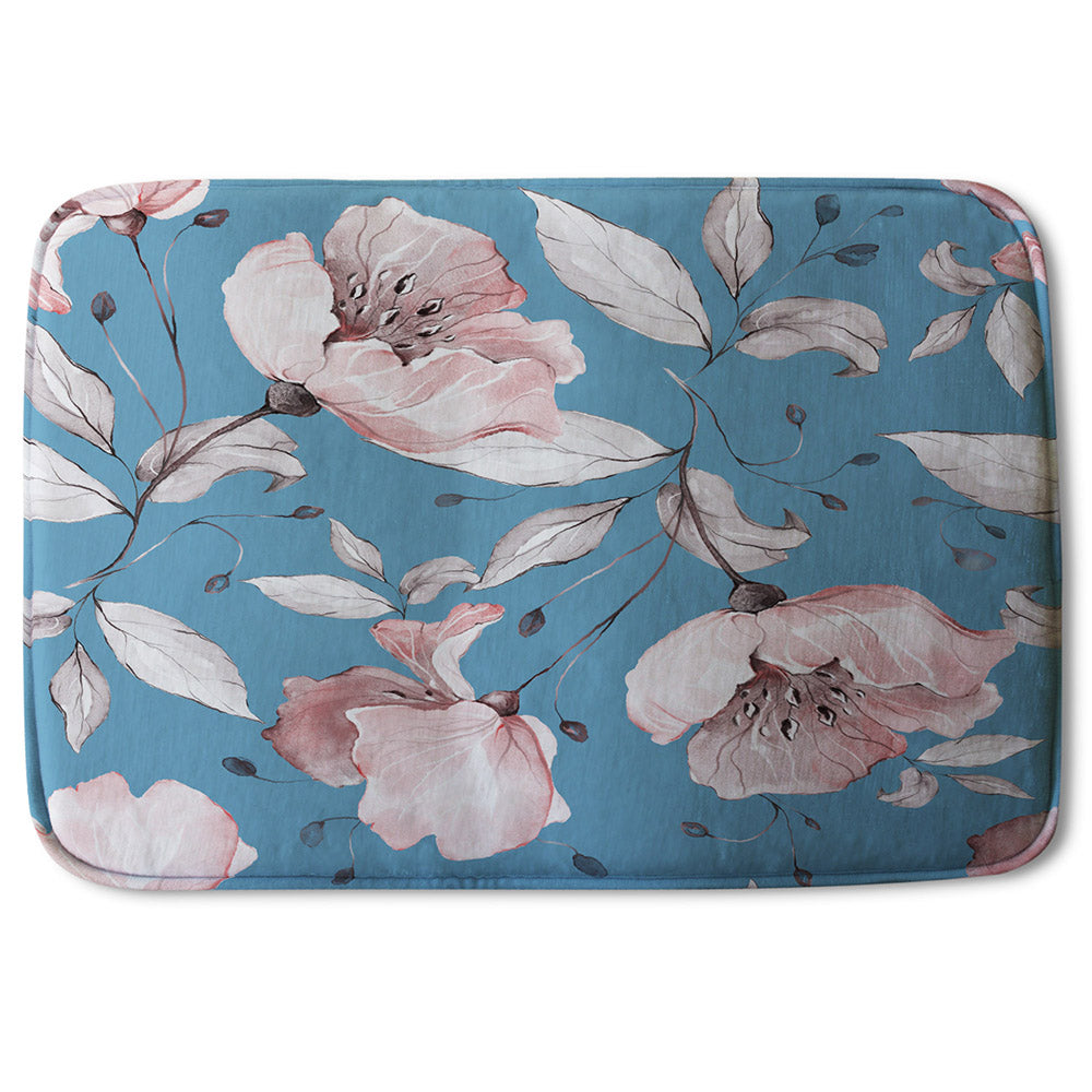 Bathmat - Pink Flowers on Blue (Bath mats)